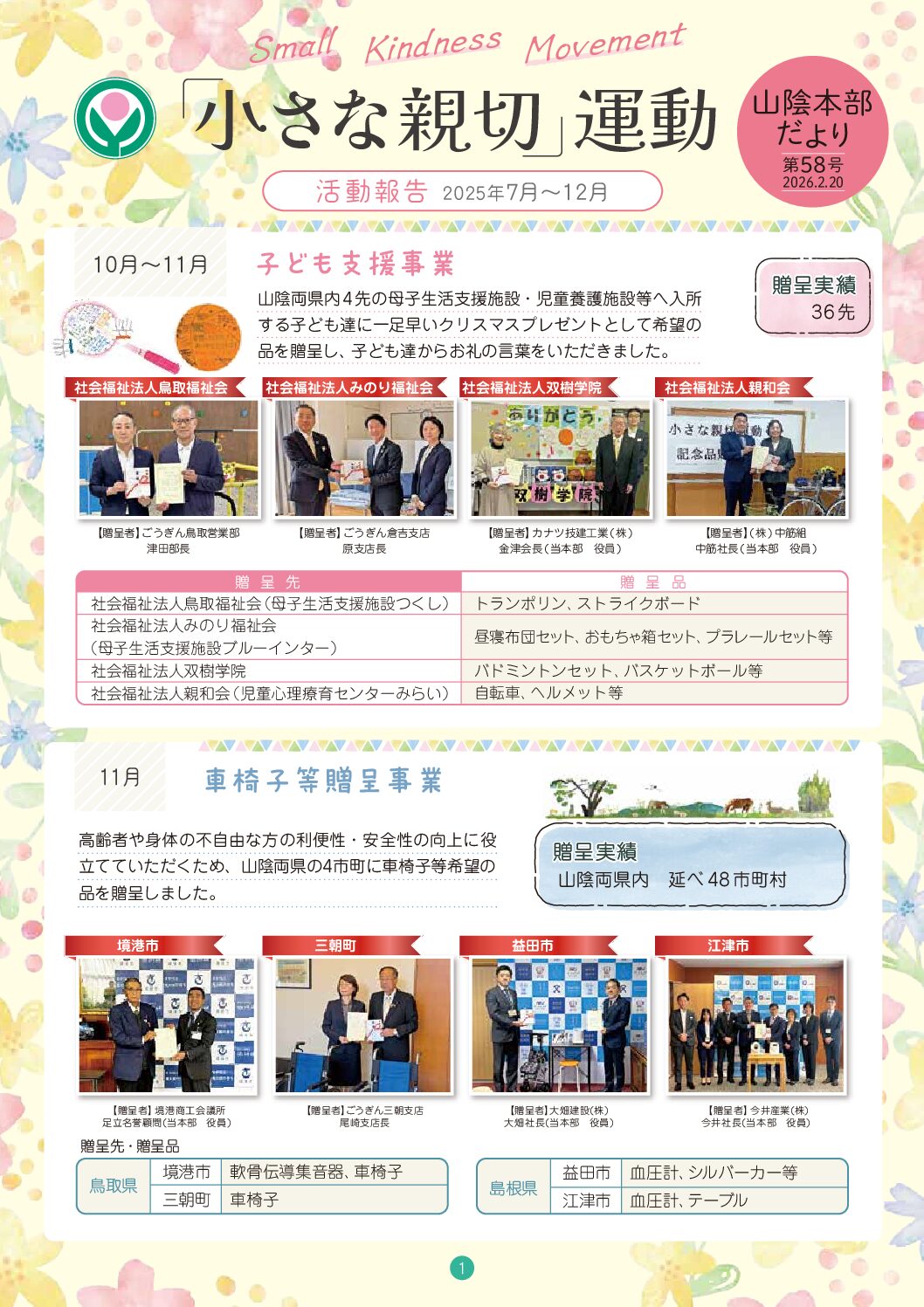 「小さな親切」運動山陰本部だより第58号(2026年2月20日発行) -
